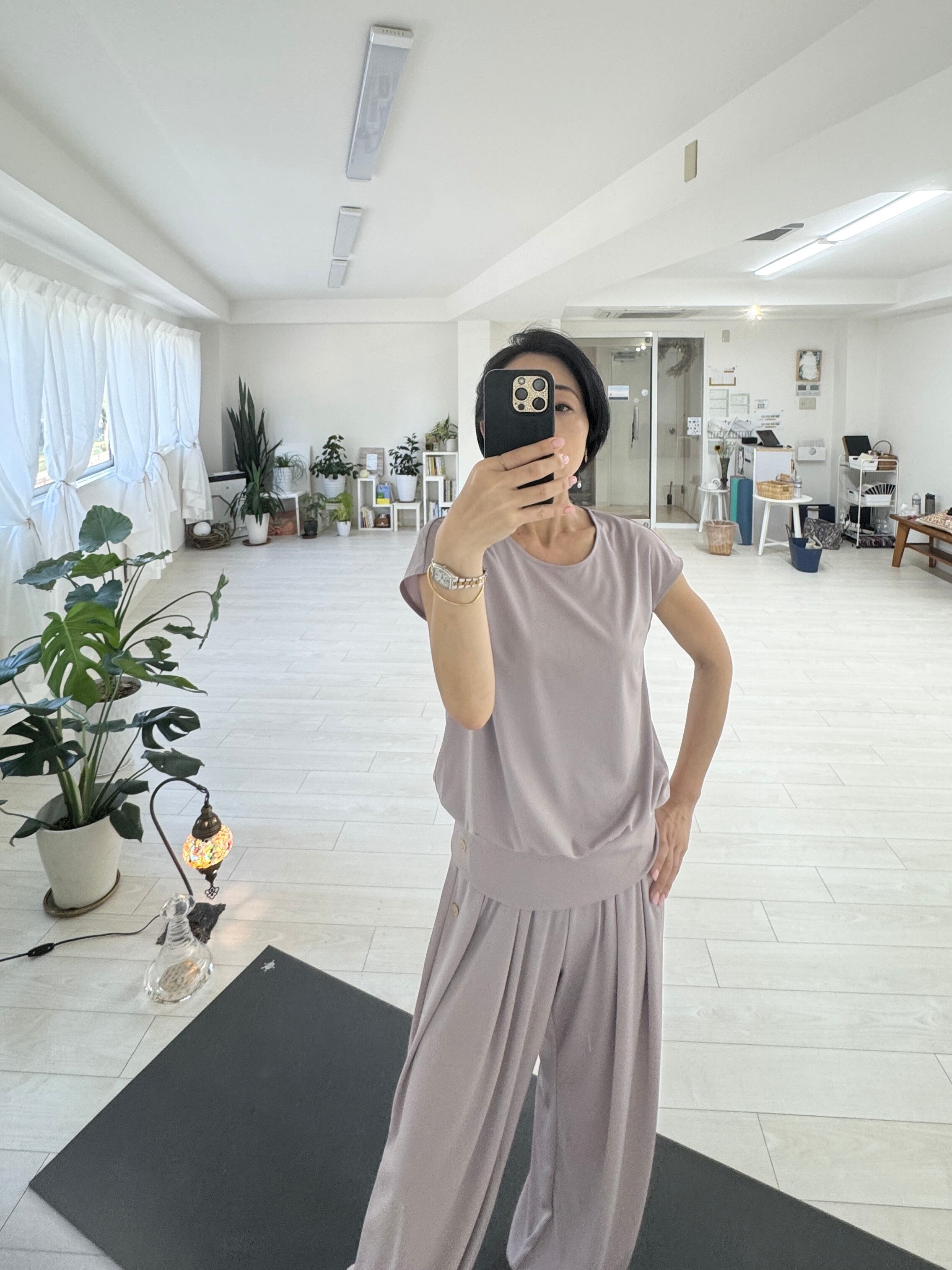 同じ素材でヨガパンツもご用意しています。セットアップも可愛いです。