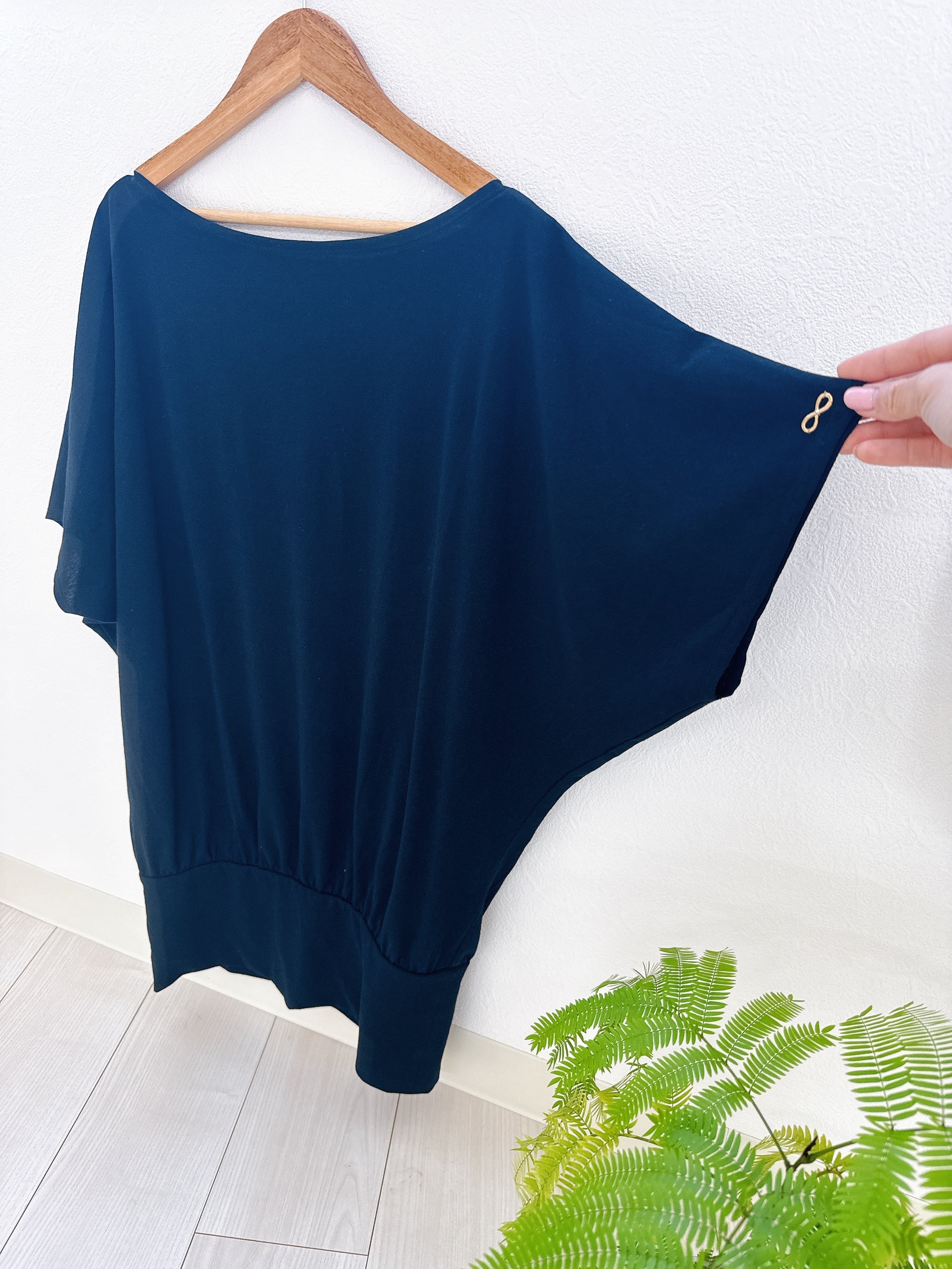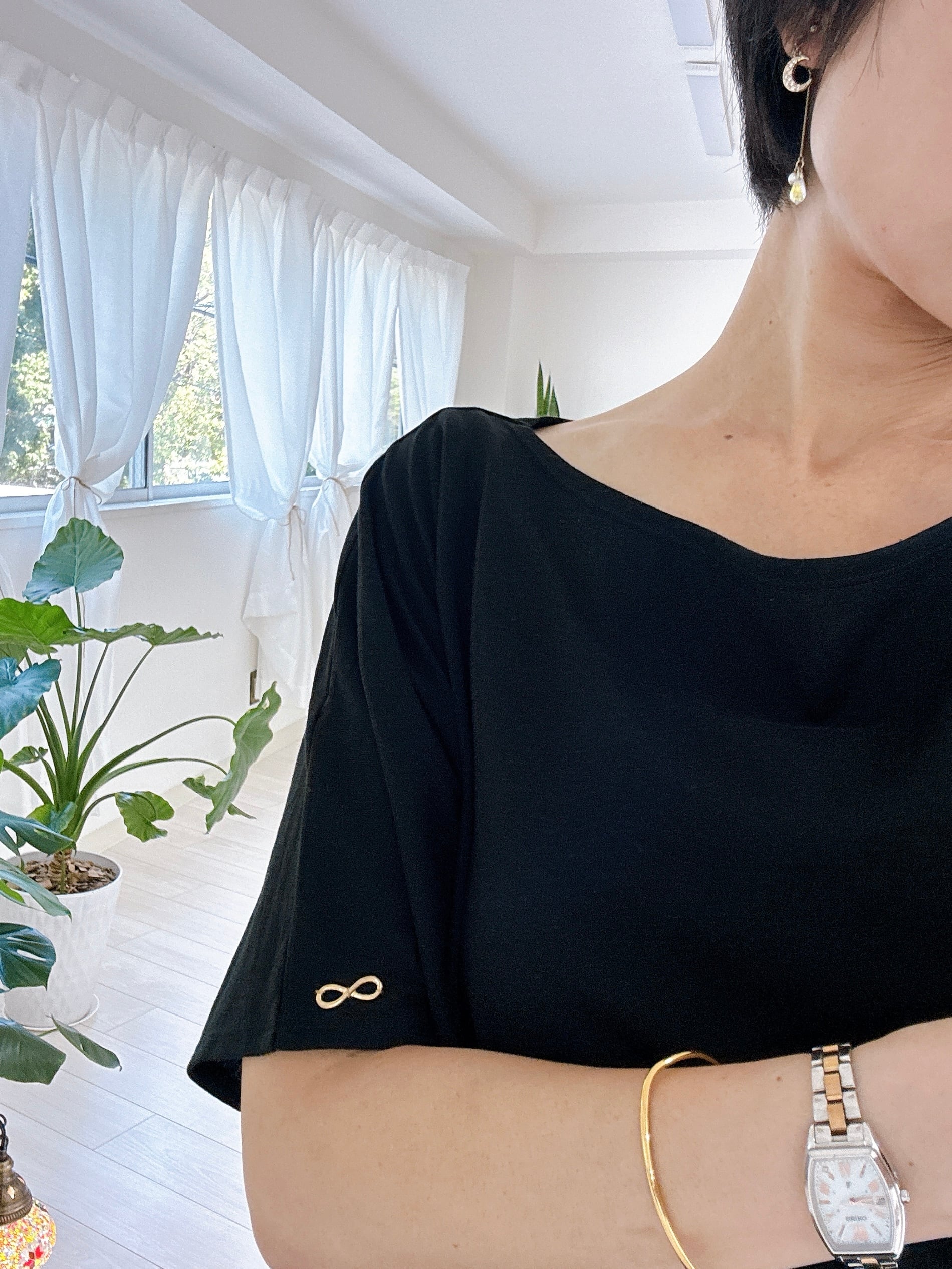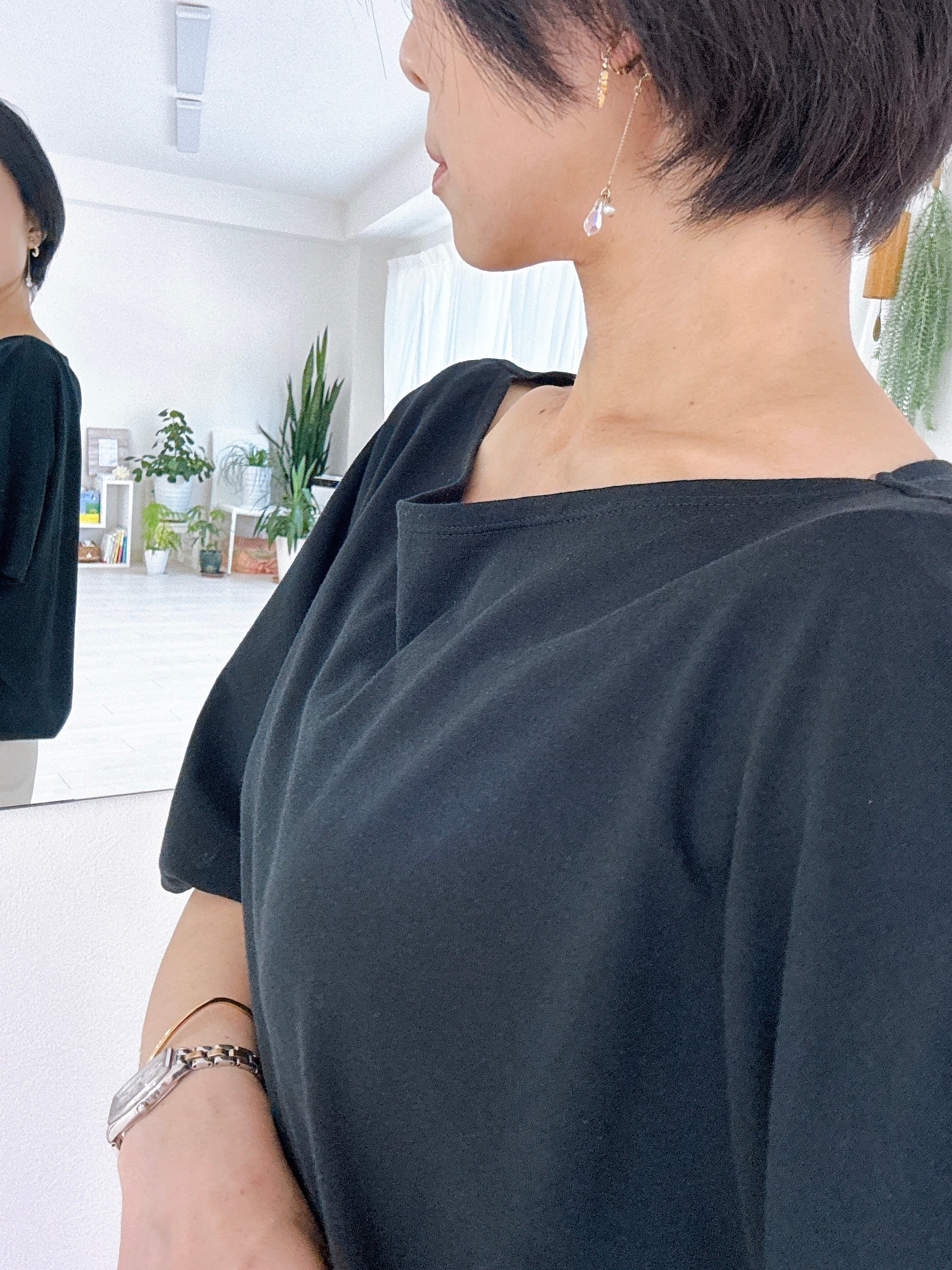 腕、お腹、お尻を隠しながらもスタイリッシュに着こなせるデザインです。
