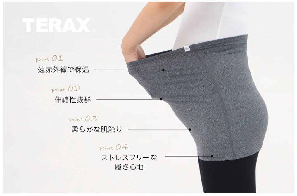 遠赤外線による保温効果で下半身を冷えから守ってくれます。