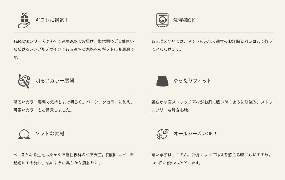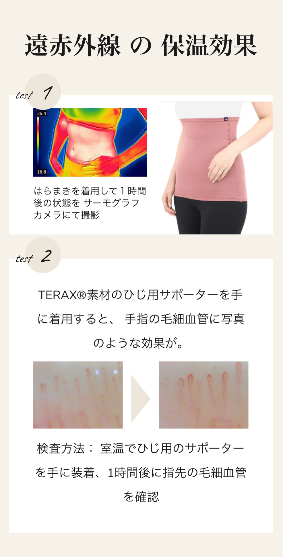 TERAX®は人の体がもつ熱エネルギーを遠赤外線エネルギーに変えて温かさを保つ高機能素材です。