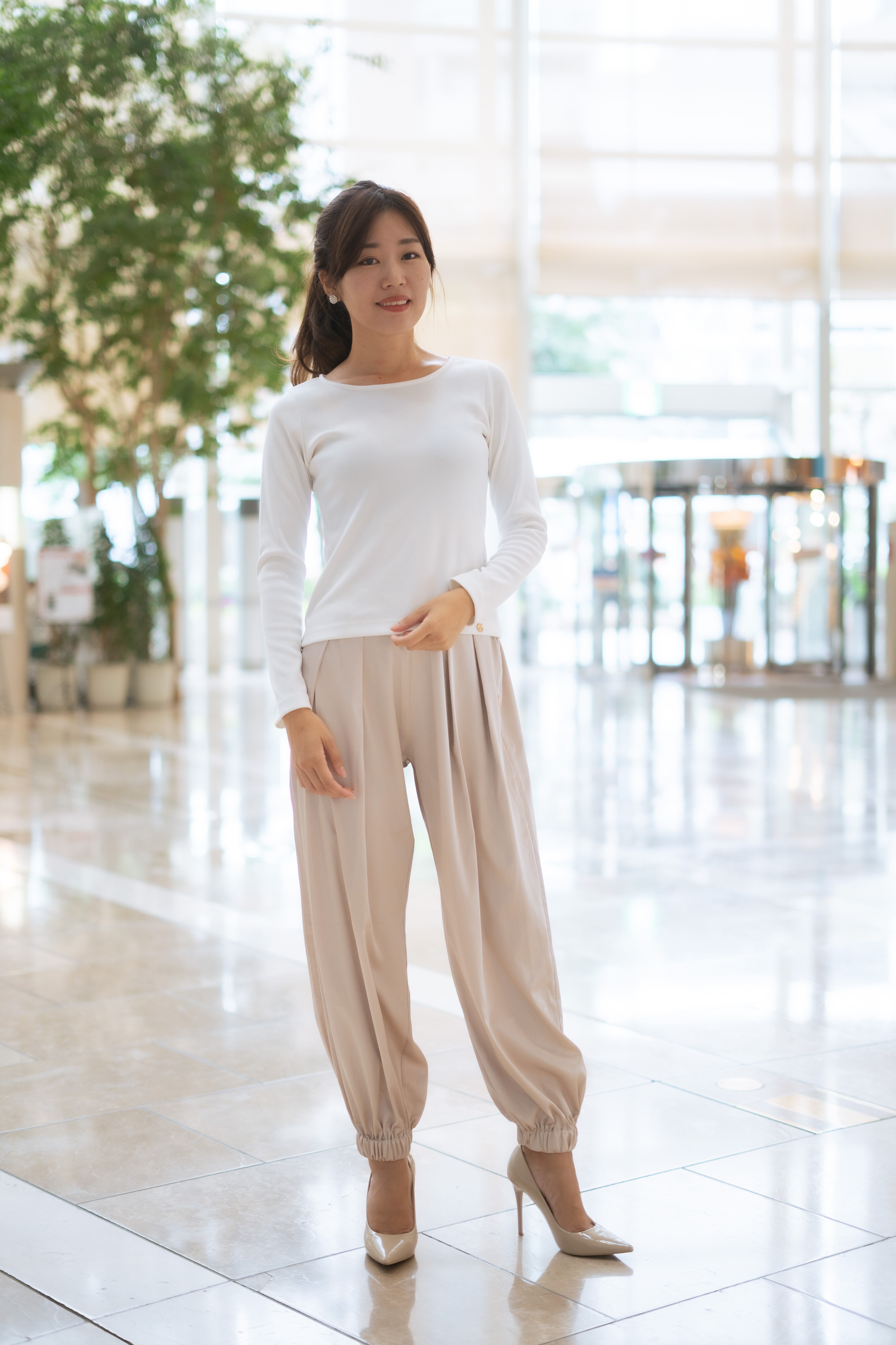 左袖のブランドチャームがシンプルな中でも上品さを際立てます。