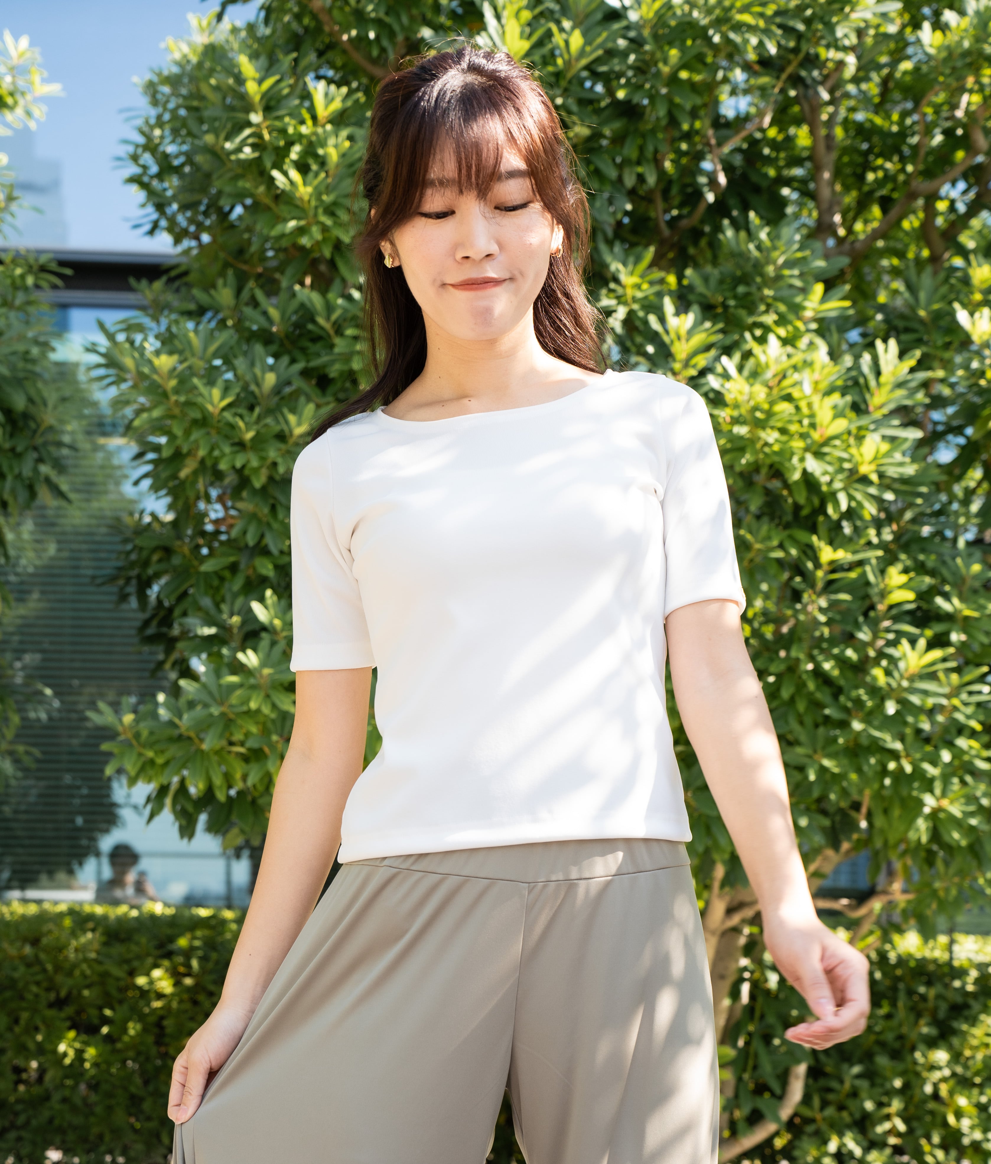 超ストレッチのあるリブ素材を使用し、着心地・動き心地・暖かさ・吸水速乾、全てを叶えました。
